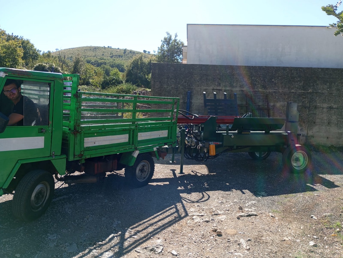 La macchina è dotata di caricatore per legna idraulico azionato da comandi sulla macchina capace di caricare legna fino a un peso di circa 5 quintali.