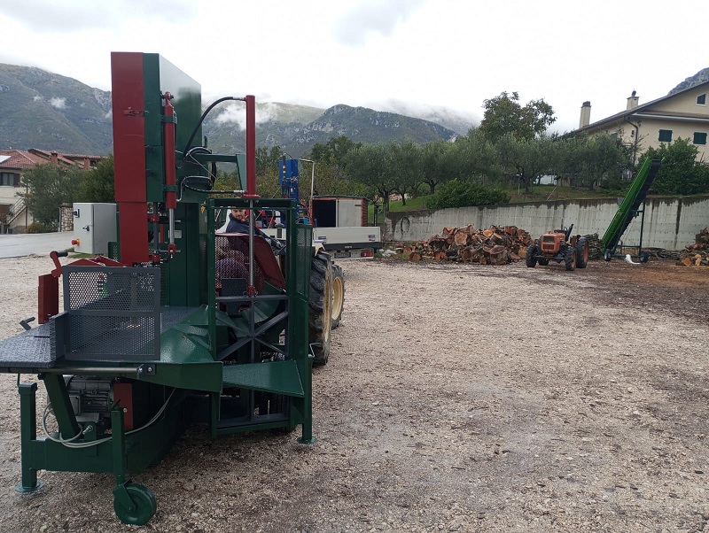 Il suo sistema di lavoro semiautomatico garantisce la produzione di circa 35 quintali di legna all'ora e permette a una sola persona di avere la massima efficienza produttiva tagliando e spaccando la legna allo stesso tempo.
