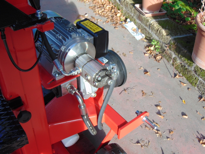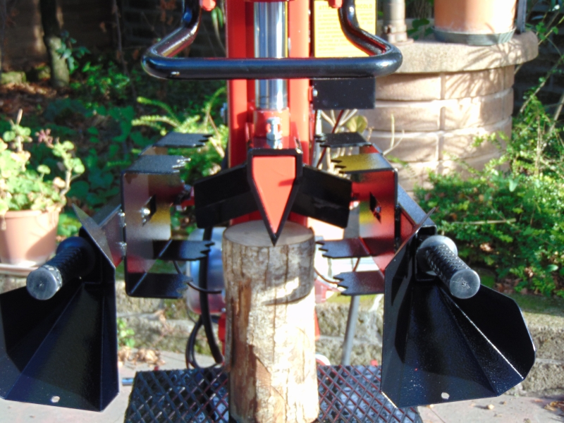 Lo spaccalegna è fornito di una doppia velocità, la velocità di avvicinamento che permette di raggiungere allo spaccalegna la velocità massima garantita dalle norme, e la velocità di spacco, più lenta ma che permette alla macchina di raggiungere le 10 ton. effettive di potenza.